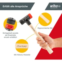Wiha Hammer 83238030, 26611, Ø 30mm, Safety, Schonhammer, Mit Hickorystiel, 306g