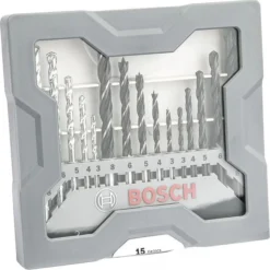 Bosch Bohrer Mini-X-Line Mixed-Set, 15-teiliges Set, 3-8mm, Metall, Holz, Steinbohrer