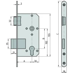 BASI Einsteckschloss ES 929, 9290-5522, Für Zimmertür, Silber, 18mm, DIN Links